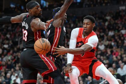 Jimmy Butler led the Miami Heat with 26 points, Tyler Herro added 23, and Bam Adebayo recorded a triple-double as Miami defeated the Toronto Raptors 121-111 on Friday night. The Heat attempted 54 three-pointers, hitting 21, marking the third-most three-point…