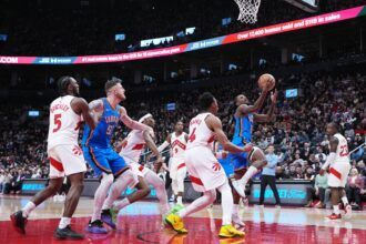 Cason Wallace equaled his career best with 27 points to lead the Oklahoma City Thunder past the Toronto Raptors 116-107 on Tuesday night, giving the NBA’s top team its fifth victory in six games. Isaiah Joe added 22 points, while…